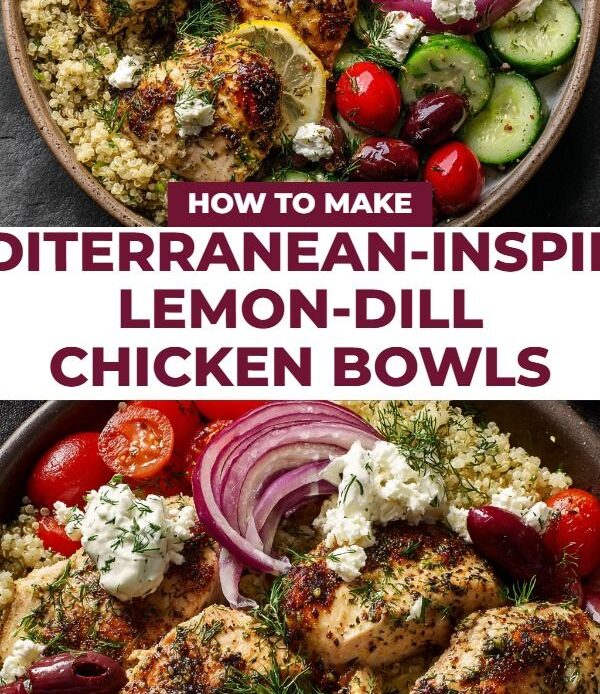 Bright, zesty, and packed with Mediterranean flavors, these Lemon-Dill Chicken Bowls bring together juicy grilled chicken, crisp veggies, fluffy quinoa, and tangy feta for a fresh, nourishing meal. Every bite balances sunshiney lemon, fragrant dill, and the briny punch of olives. Whether for weeknight dinners, meal prep, or a casual dinner with friends, these bowls are simple, stunning, and satisfying.